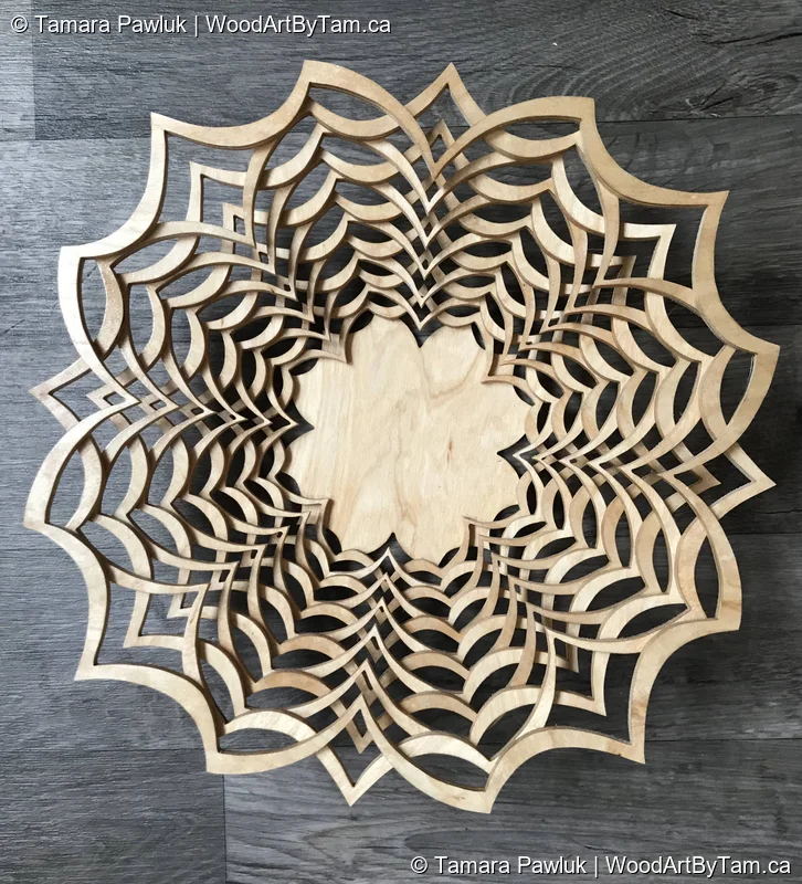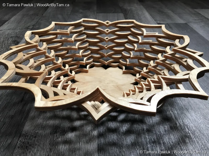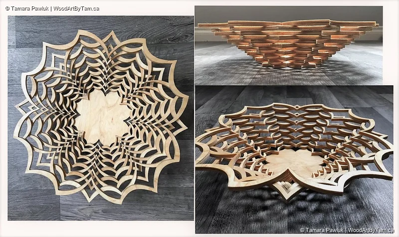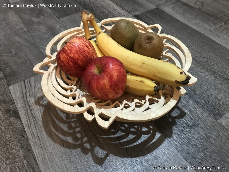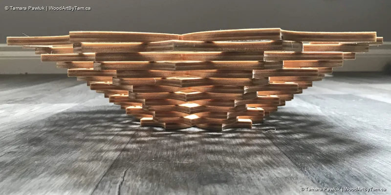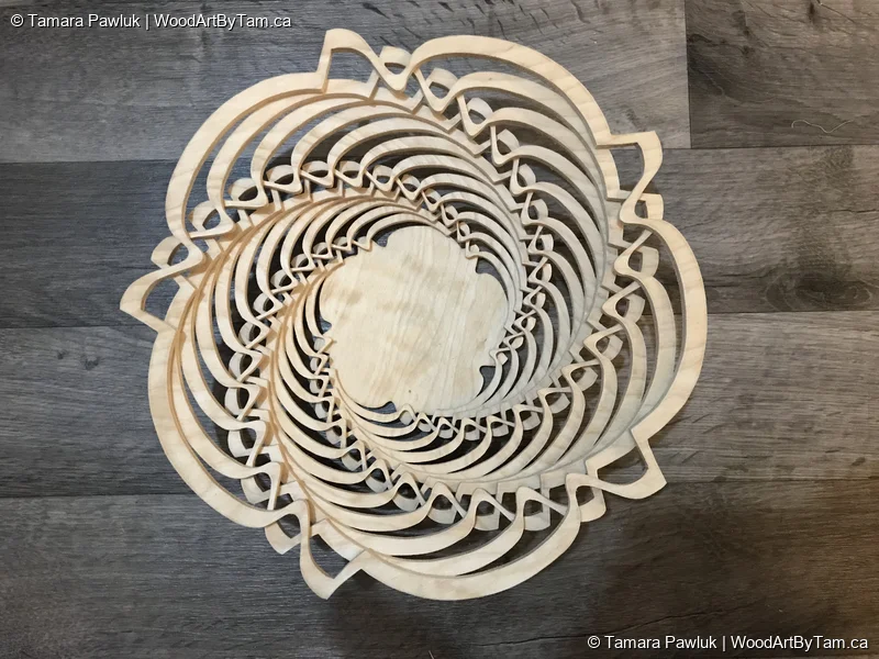 These are fun to make because they are just cut one flat piece of wood. The wood is cut into smaller circles as you go towards the centre then you separate the pieces and glue them together to make the bowl. It’s almost magical the way it comes together.