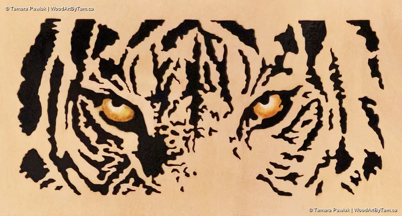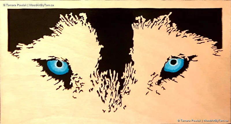 I made these just because I wanted to as I thought they would make a pretty finished project. I wasn’t wrong. Cut from 1/4″ baltic birch and mounted on a baking piece painted black. After staining the piece with golden oak, I carefully painted the eyes to make them stand out beautifully.