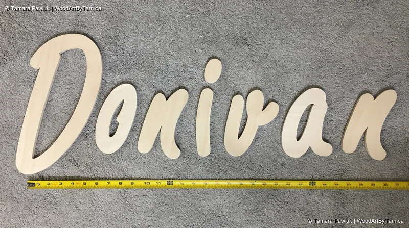 Made all these on order but they certainly aren’t easy so not my favourite thing to make. Especially creating the pattern and printing it. But I’m happy I was able to make these for my clients and one of them sent me pictures of the names on the wall. They are cut from 1/2″ baltic birch and finished (or not) to the client’s specifications.