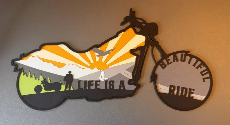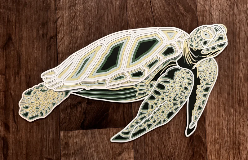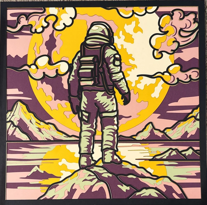Just like it sounds. Cardstock cut out and glued together in layers.