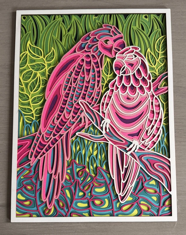 I love doing these for many reasons. There is less fumes and mess than cutting wood, it takes way less time, and the results are beautiful and colourful pieces. I have made several so far and I wish I could make all of them but I have no place to display them all. I have made a few pieces on order though and would be happy to make them to buy. Let me know what you want and I’ll see what I can do!