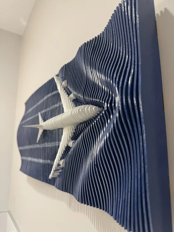 This is 1 of 7 pieces I created for the new bathrooms we got at work. I had never tried anything like this and was super worried it would be a disaster. I had to cut 178 “slats”, individually paint them, then glue them onto 3 horizontal slats with notches in them. It was heavy and floppy so I decided to add a backing board. I sent a picture to the pattern designer and he complimented me on my first try saying that I did better than some of his clients who have done several already.