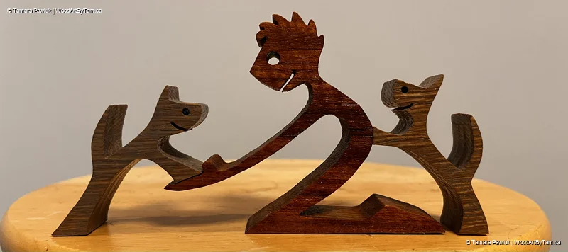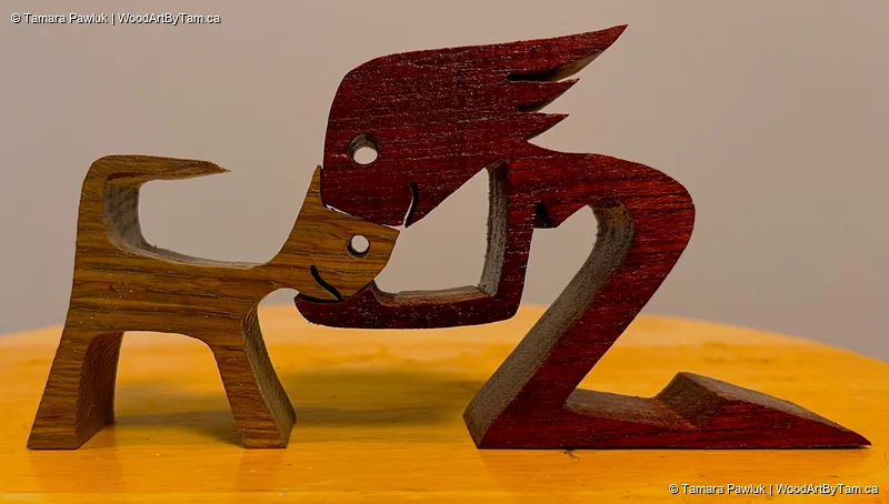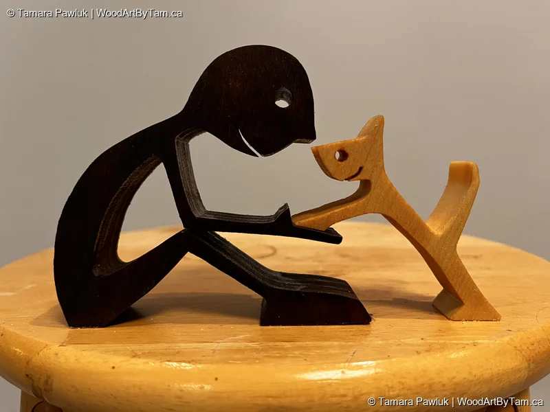 These cute little people are cut from various 1″ thick hardwoods. I am selling them at $25 each plus shipping. The boy with the cat and the girl with the dog are both currently ready for purchase. I bought a whole book of patterns so there are many different kinds to choose from if you want me to make you a different one. Let me know and I can show you the options. They are about 3-4″ tall depending on the piece.