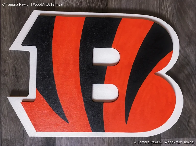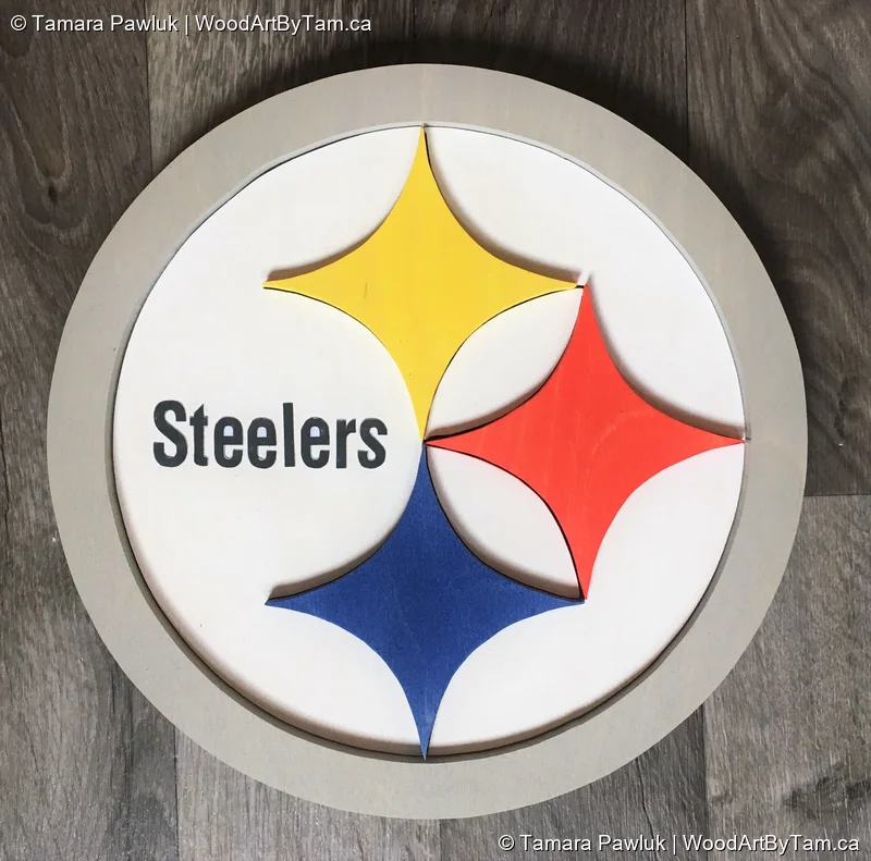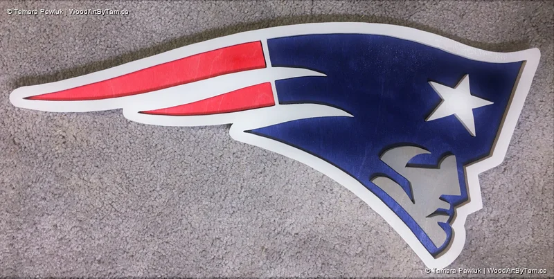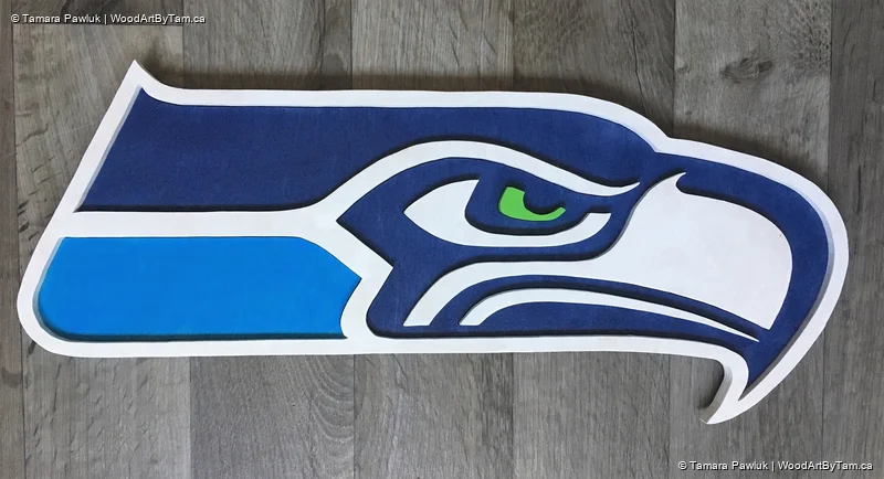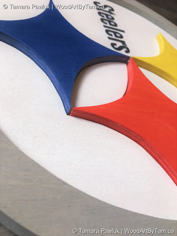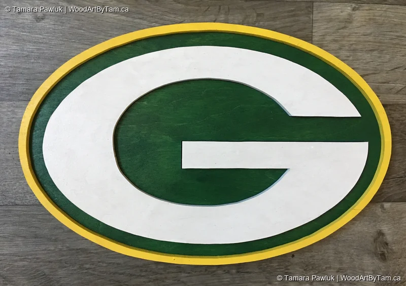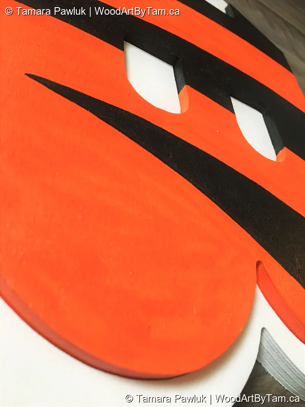 I made the Oilers logo first as I live in Edmonton and I figured it would be a good seller at the Farmer’s Market. Once people saw that one though, they asked me to make logos from their team of choice as well. These are cut from 1/2″ baltic birch (the smaller Oilers one is 1/4″) and painted accordingly then reassembled in differing depths to make the whole thing more interesting. This is a form of woodworking called segmentation.