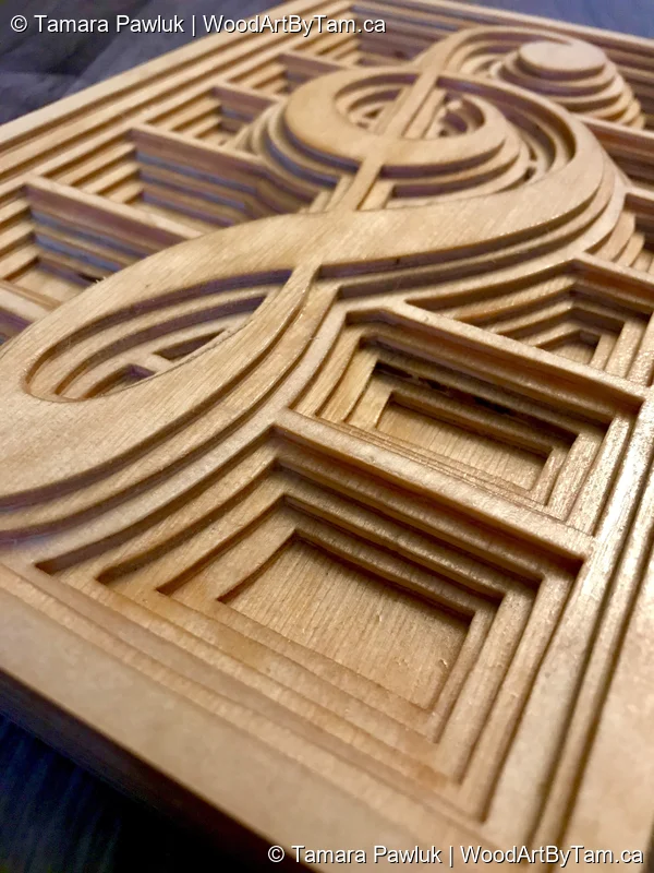 Made this just because I liked it. Someone else also liked it and bought it. Cut from 7 layers of 1/8″ baltic birch and stained golden oak.